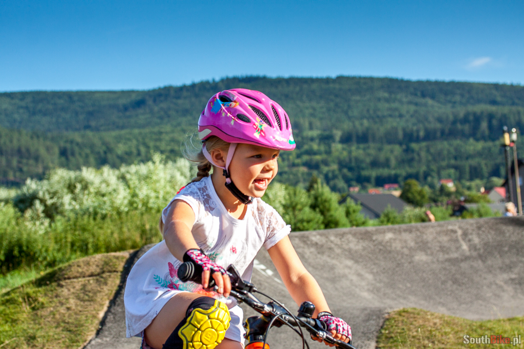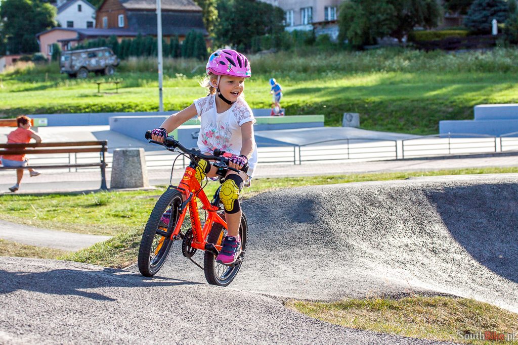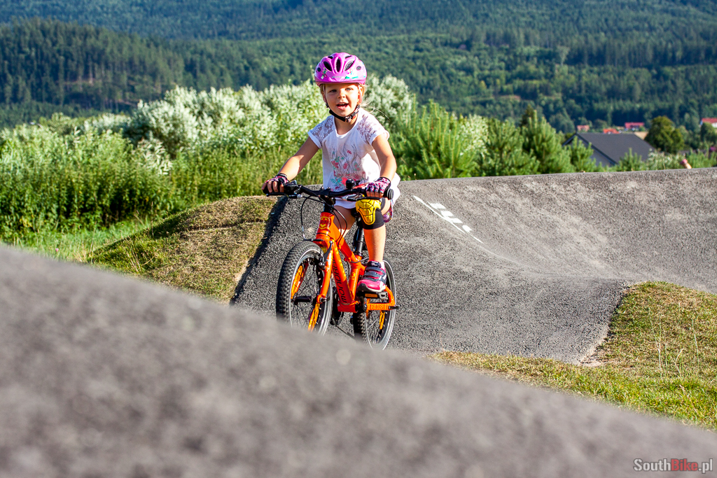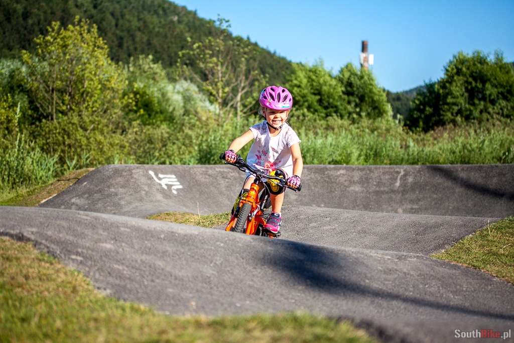 Tak się bawi i uczy jeździć nasza córa na świetnym, asfaltowym pumptracku w Szczytnej. Zresztą sam miałem tam dobrą zabawę :). Może kiedyś doczekamy się takiego obiektu w Opolu...