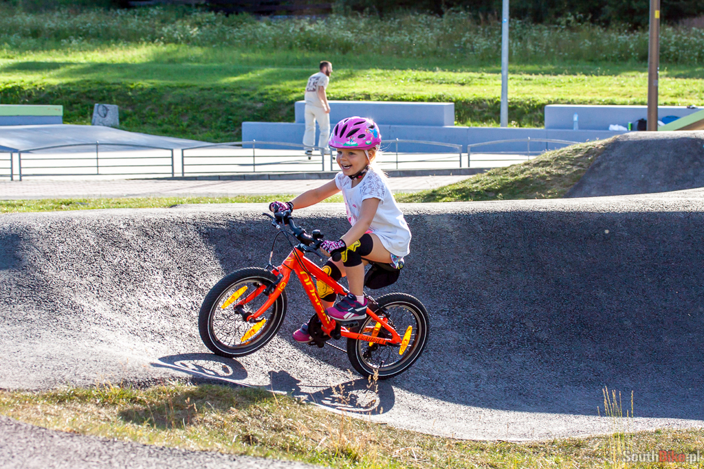 Tak się bawi i uczy jeździć nasza córa na świetnym, asfaltowym pumptracku w Szczytnej. Zresztą sam miałem tam dobrą zabawę :). Może kiedyś doczekamy się takiego obiektu w Opolu...